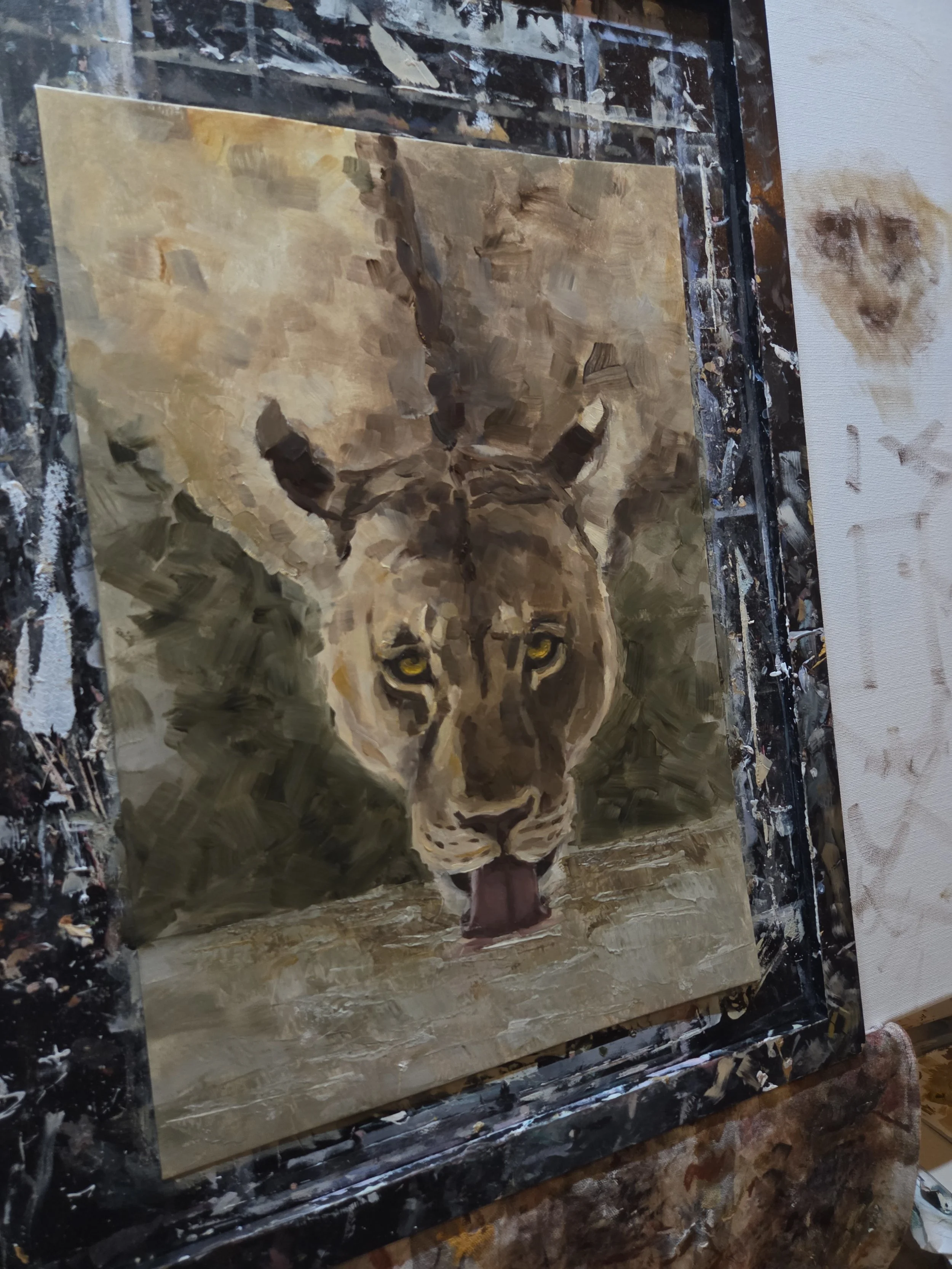 Lion 150,00 € loppuunmyyty Lion - 30x42cm, Öljymaalaus paperille, 2025. Verkkokauppa › Lion Loppuunmyyty Lisätty! Lion - 30x42cm, Öljymaalaus paperille, 2025.
